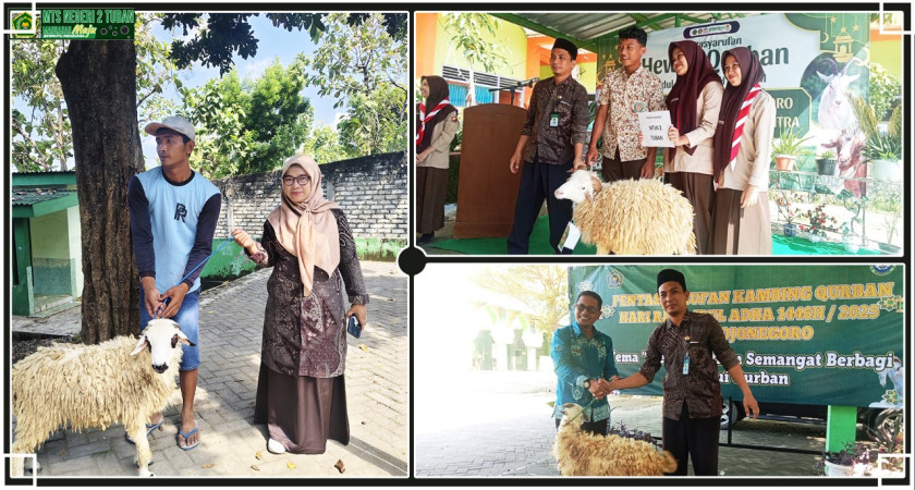 Menjelang perayaan Iduladha 1446 H, MTs Negeri 2 Tuban menerima sumbangan hewan kurban berupa kambing dari tiga lembaga, yaitu MAN 1 Bojonegoro, MAN 2 Bojonegoro, dan Bank Syariah Indonesia (BSI) Cabang Tuban, pada Kamis (5/6/2025).