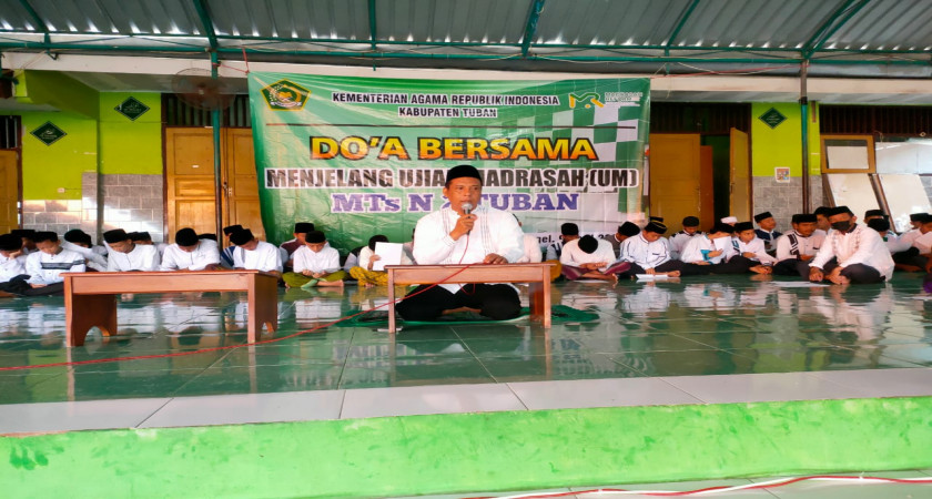 Kab Tuban (MTs N 2)- Menjelang Ujian Madrasah (UM) yang akan dilaksanakan mulai Senin (11/4) sampai dengan (19/4) MTs Negeri 2 Tuban mengadakan acara istighosah di Musala madrasah, Sabtu (9/4).I stighosah tersebut diikuti oleh seluruh siswa kelas 9 beserta wali murid, seluruh guru dan karyawan MTs Negeri 2 Tuban.