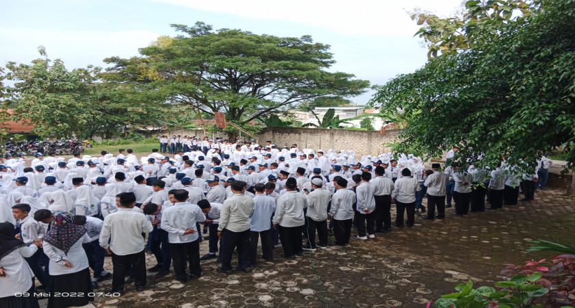 Dihari pertama masuk sekolah setelah libur Hari Raya Idul Fitri, Senin (9/4) jam 07.00 WIB, seluruh guru, karyawan dan siswa MTs Negeri 2 Tuban melakukan halalbihalal di halaman madrasah.